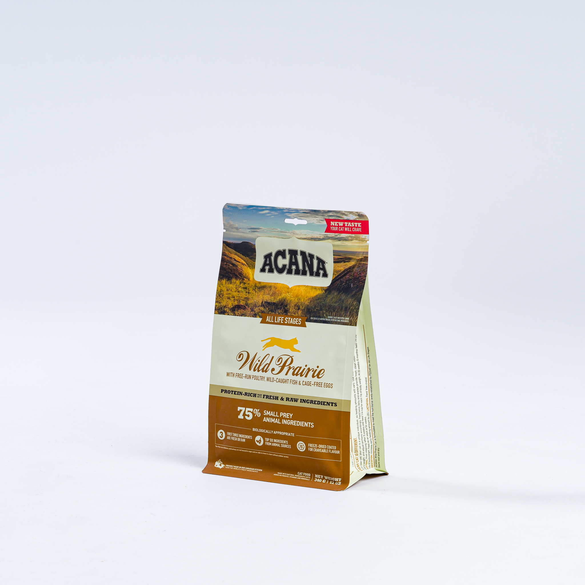 ACANA® Wild Prairie is packed full of protein and offers your cat quality animal ingredients from free-run chicken and turkey, freshwater fish, and cage-free eggs. Your cat’s digestive health will be supported through high-quality protein, fibre, and probiotics. Taurine, EPA, and DHA help to maintain heart and eye health, while the omega fatty acids will make your cat’s coat shiny.