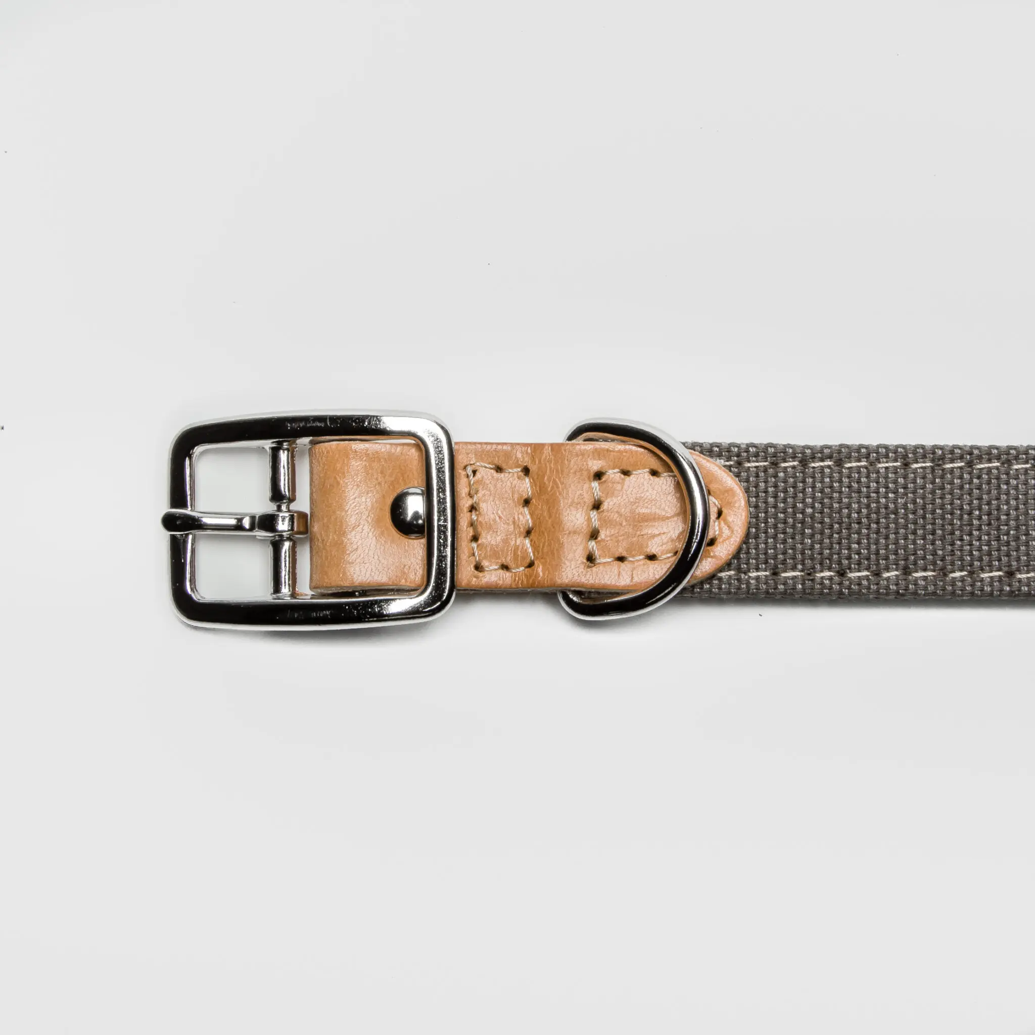 The Cloud7 Tivoli Olive Dog Collar was crafted by hand. It is made of robust cotton canvas and finest Italian leather. The combination of materials and colours, with the fine contrast stitching and high-quality metal gives this dog collar a sophisticated sporty look.