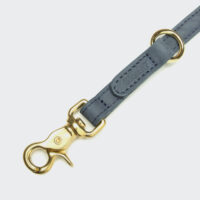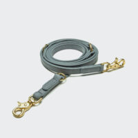 The dog leash TIERGARTEN is made of high-quality nubuck leather and handcrafted. It has a soft, velvety character with a discreetly polished structure. Thanks to integrated rings the dog leash is adjustable to three different lengths. It can be comfortably worn over the shoulder or hip during a walk. All metal parts are made of real brass.