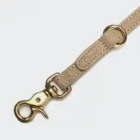 The dog leash TIERGARTEN is made of high-quality nubuck leather and handcrafted. It has a soft, velvety character with a discreetly polished structure. Thanks to integrated rings the dog leash is adjustable to three different lengths. It can be comfortably worn over the shoulder or hip during a walk. All metal parts are made of real brass.
