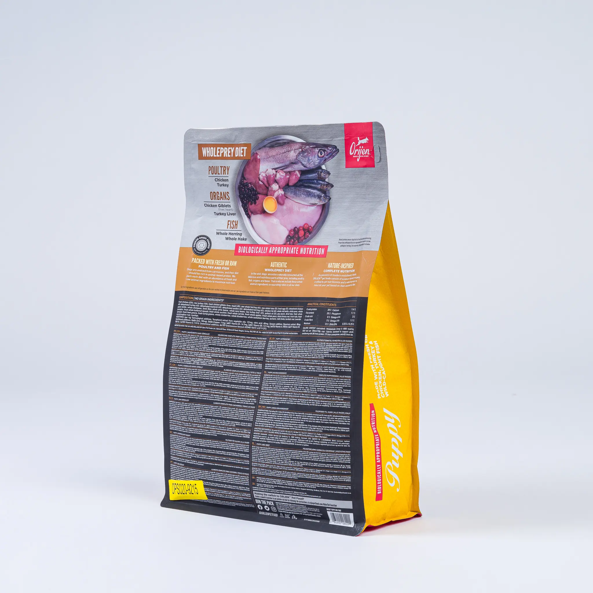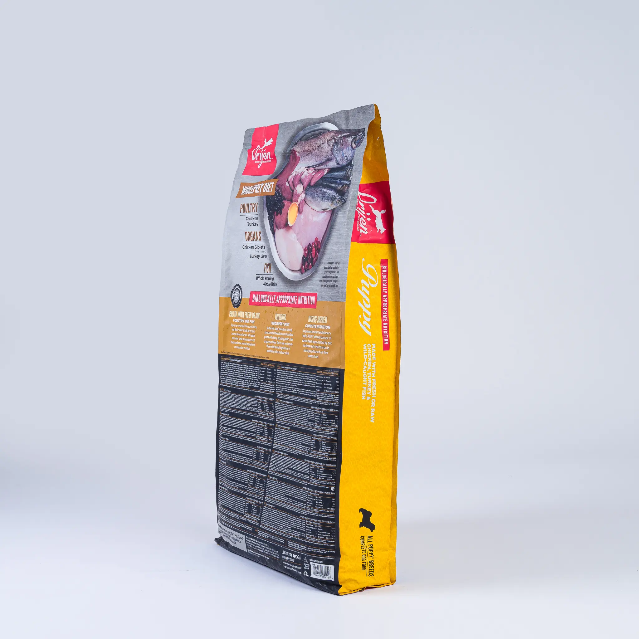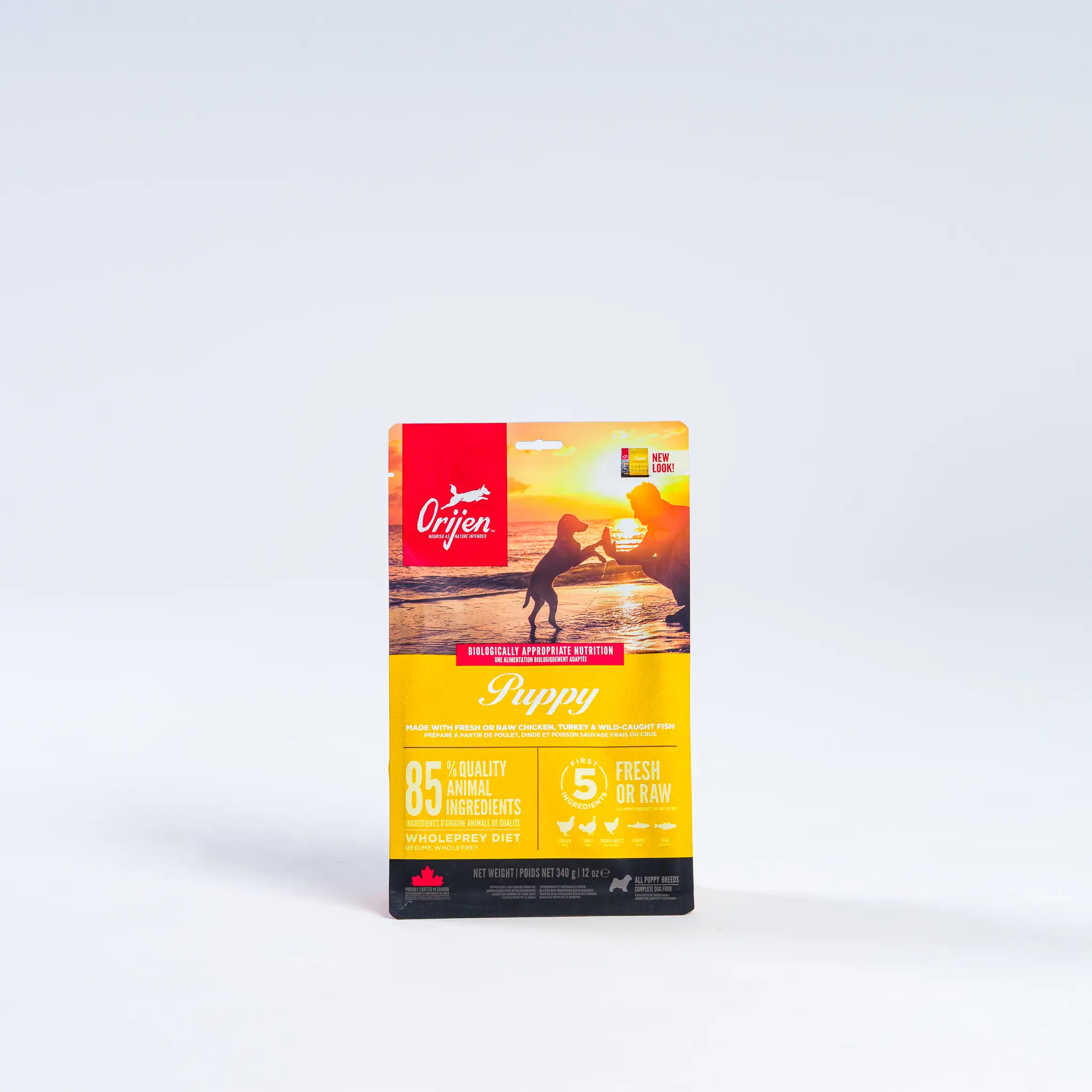 ORIJENĀ® Puppy diet is packed with 85% quality animal ingredients like fresh or raw free-run chicken and turkey, and wild-caught or sustainably farmed fish. Packed with WholePrey animal ingredients like organs and bone, this food is made with the most nutrient-dense, succulent parts of the prey to deliver the nutrition puppies need.