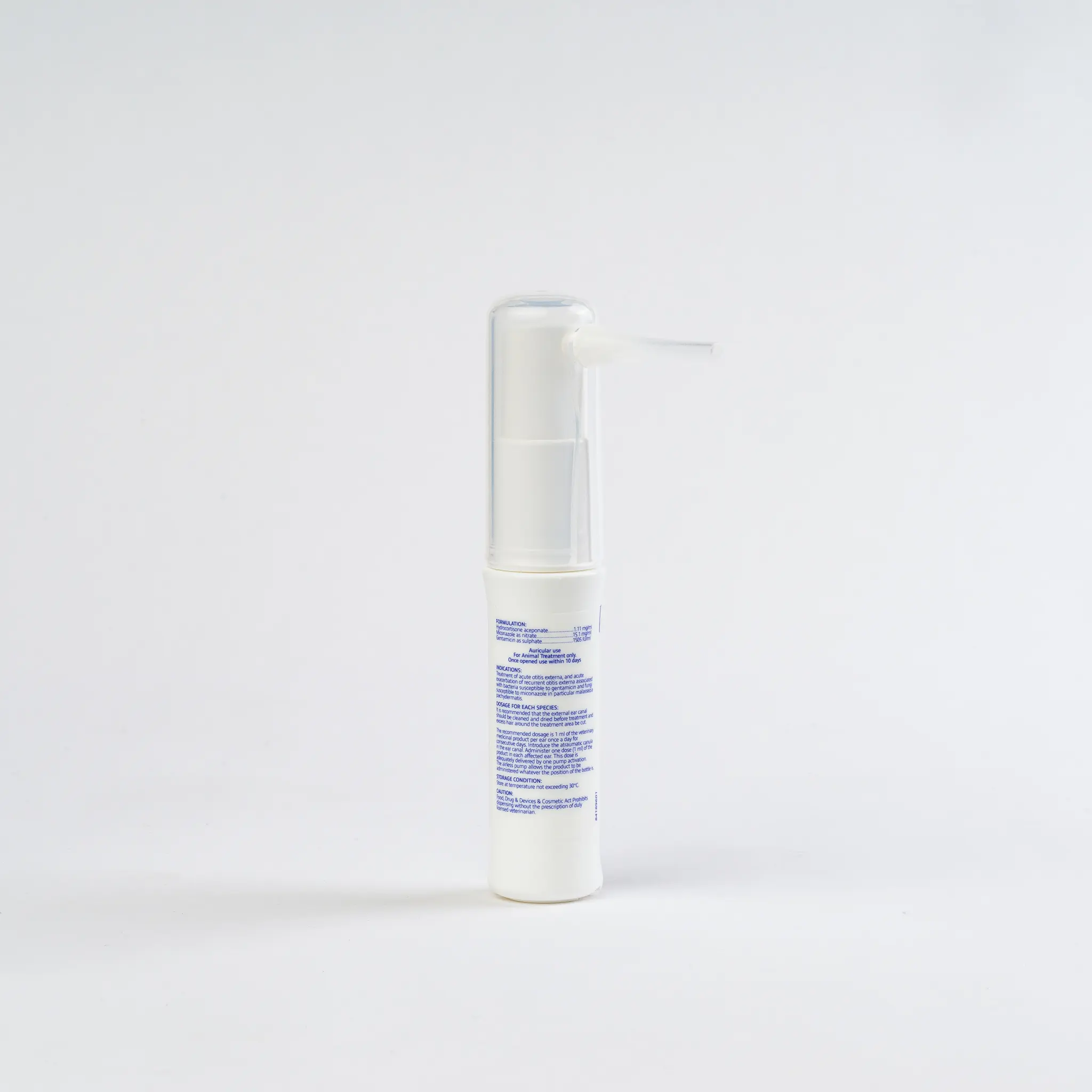 Introduce the atraumatic canula in the ear canal. Administer one dose (1mL) of the product in each affected ear. This dose is adequately delivered by one pump activation. The airless pump allows the product to be administered whatever the position of the bottle is.